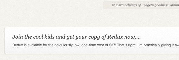 注意觀察Redux暗色背景上的淺色文字,你會(huì)發(fā)現(xiàn)它們都被添加上了投影效果?,F(xiàn)在我們可以使用CSS3中的text-shadow屬性來(lái)完成文字的投影 設(shè)計(jì),代替了在Photoshop中完成此項(xiàng)工作。而且使用CSS3來(lái)給文字添加陰影自由度更高,在瀏覽器支持的情況下,你可以給任意文字添加你想要的陰 影效果。當(dāng)然IE8以下版本的瀏覽器是不支持此項(xiàng)屬性的,這是我們?cè)谠O(shè)計(jì)中需要注意的地方。另外,和前面提到的其它設(shè)計(jì)細(xì)節(jié)一樣,陰影的效果也要足夠柔 和,不可過(guò)于強(qiáng)烈,不然很容易讓整個(gè)設(shè)計(jì)看起來(lái)有一種臟臟的感覺(jué),顯得不夠精致。